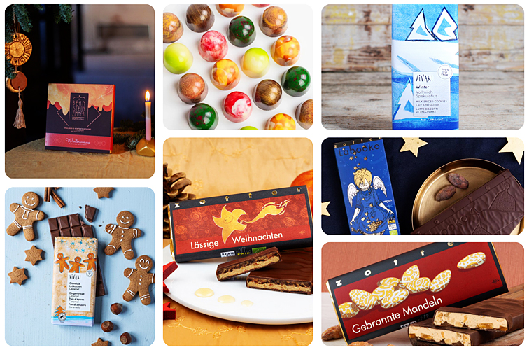Das Zotter Süße Weihnachtszeit Schoko-Minis, 5 Sorten, Geschenkset besteht aus 5 verschiedenen, handgeschöpften Bio-Mini-Schokoladentafeln zu je 20 g. Enthalten sind die Sorten Süße Weihnacht (Lebkuchen & Früchte), Für süße Engerl (Schokobiene), Marzipan und Mandeln, Nougat Variation und Glücksbringer (Milchschoko-Mousse). Das komplette Zotter Unternehmen ist Fair Trade verifiziert und produziert zu 100% Bean-to-Bar: von der Kakaobohne bis zur fertigen Tafel. Hergestellt werden die Schokoladen in der Zotter Schokoladenfabrik in Riegersburg, Österreich. 2 x 35 g. Preis: 9,75 €.