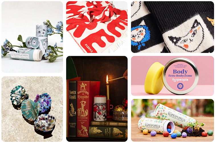 Fotos: © Das Bernsteinzimmer, Eli Pralinen, Vivani / www.biohof.at, Zotter, Sonnentor, Yogi Tea, Tante Fine, Duschbrocken, forpeople, Bomb Cosmetics Queen of Green, Klekks, Dedicated, by Vivi., honey flamingo, Archivist Gallery, Die Stadtgärtner, Bow & Hummingbird, Ein guter Plan